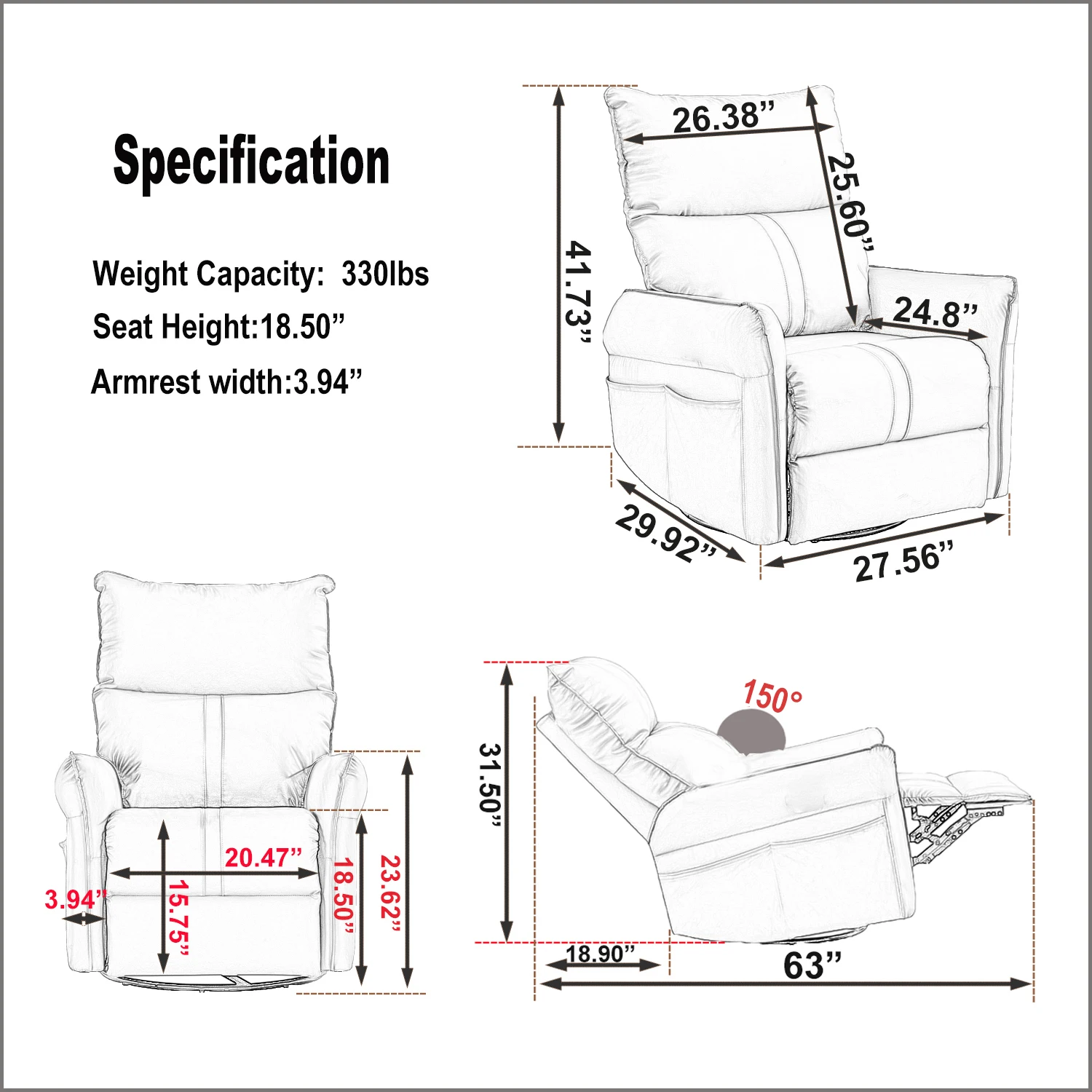 [Padded & Overstuffed] It comes with soft PU surface in elegant color, smooth lines in design, and overstuffed seat, making it an ideal chair for family use. There are two pockets at the right arm side, making TV remote control or magazines within your reach. If you drop water on it, it is easy to wipe with a clean dry or damp cloth.