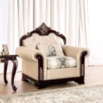 🪑ROLLED ARMS WITH NAILHEAD TRIM: The classic rolled arms, accented with nailhead trim, enhance the traditional style, while intricate carved details and damask patterns add charm and character.