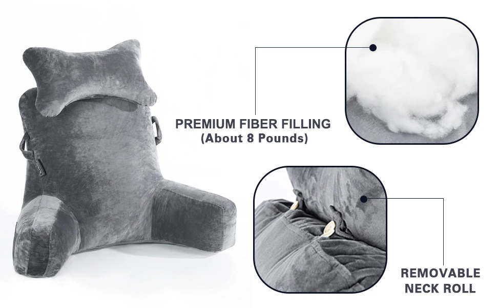 Supports back & arms when reading, watching TV, or relaxing: Filled high quality pure fiber,velvet cover is soft and breathable