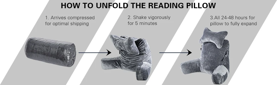 ❤️VACUUM COMPRESSION PACKAGING – All reading pillow product are vacuum-packed for compacted shipping.After unpacking, you need to KNEAD AND SHAKE THE PILLOW VIGOROUSLY FOR 5 MINUTES to let the fiber filling inside spread out. It will take 48 hours to fully expand,then you can achieve the best experience.Please feel free to contact us if you have any problems with our SLIGUY Reading Pillow.