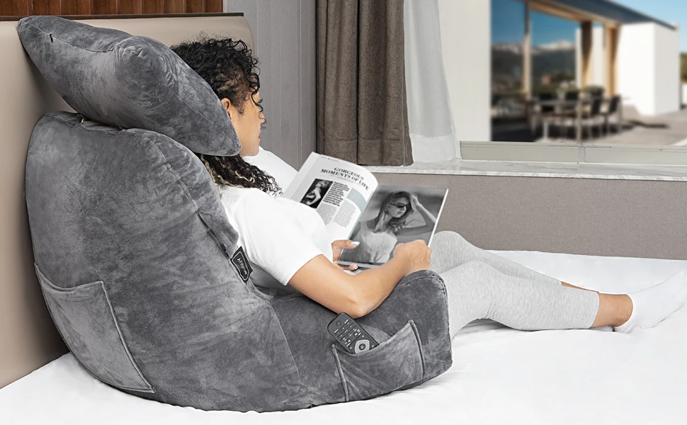 🎁PERFECT READING PILLOW – SLIGUY reading pillow is unlike any back pillow you’ve tried before. Our bed rest reading pillow is larger than usual reading pillows at the market. Pillow measures 31 inches high by 22.8 inches wide,the enlarged backrest and curved design which can effectively support your neck and shoulders. When you sit on the bed and relax,effectively relieve the fatigue of the back, and create unparalleled comfort.