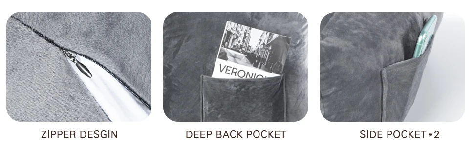 🌈PREMIUM BED REST PILLOW – With 3 convenient pockets,the 2 small side pockets are handy for storing a remote, phone, while the larger back pocket is the perfect size for keeping extra magazines, books, or a tablet. What’s more,It also features a built-in carrying handle ,you can easily carry the reading pillow to another room or sofa with the convenient carrying handle.It has a simple hidden zipper so the cover can be easily washed if necessary.