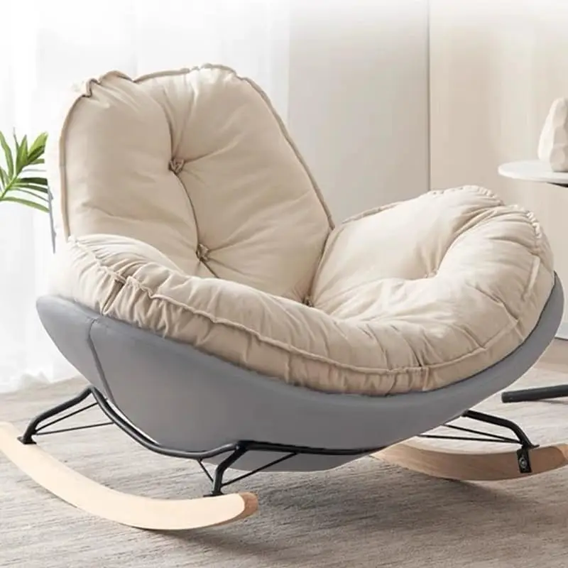 - The surface of the rocking chair is made of breathable Suede, which is waterproof and easy to care for. The interior of the seat cushion is filled with soft cotton, which has high resilience and will not collapse. Three-dimensional and stylish, full of wrapping feeling, very comfortable. The heavy-duty metal frame gives you a solid foundation.