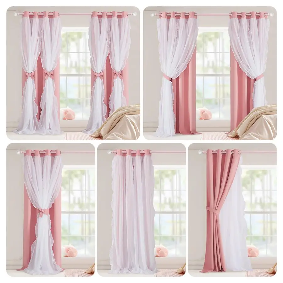 PRINCESS CURTAINS STYLE Our designer masterfully combines solidcolored functional fabric with four attached layers of sheer ruffles. Coordinating selffabric bow ties complete the look, seamlessly blending shabby chic and princess style aesthetics. Whether for a child or the young at heart, these curtains instantly transform any childs room, bedroom, or living room into a whimsical retreat.